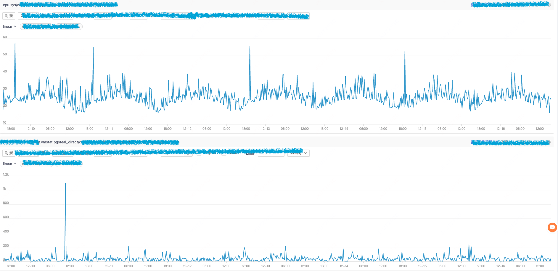 多业务线均反馈了类似问题,除了业务毛刺,还会偶发的cpu.idle掉底毛刺,整体影响面比较大。