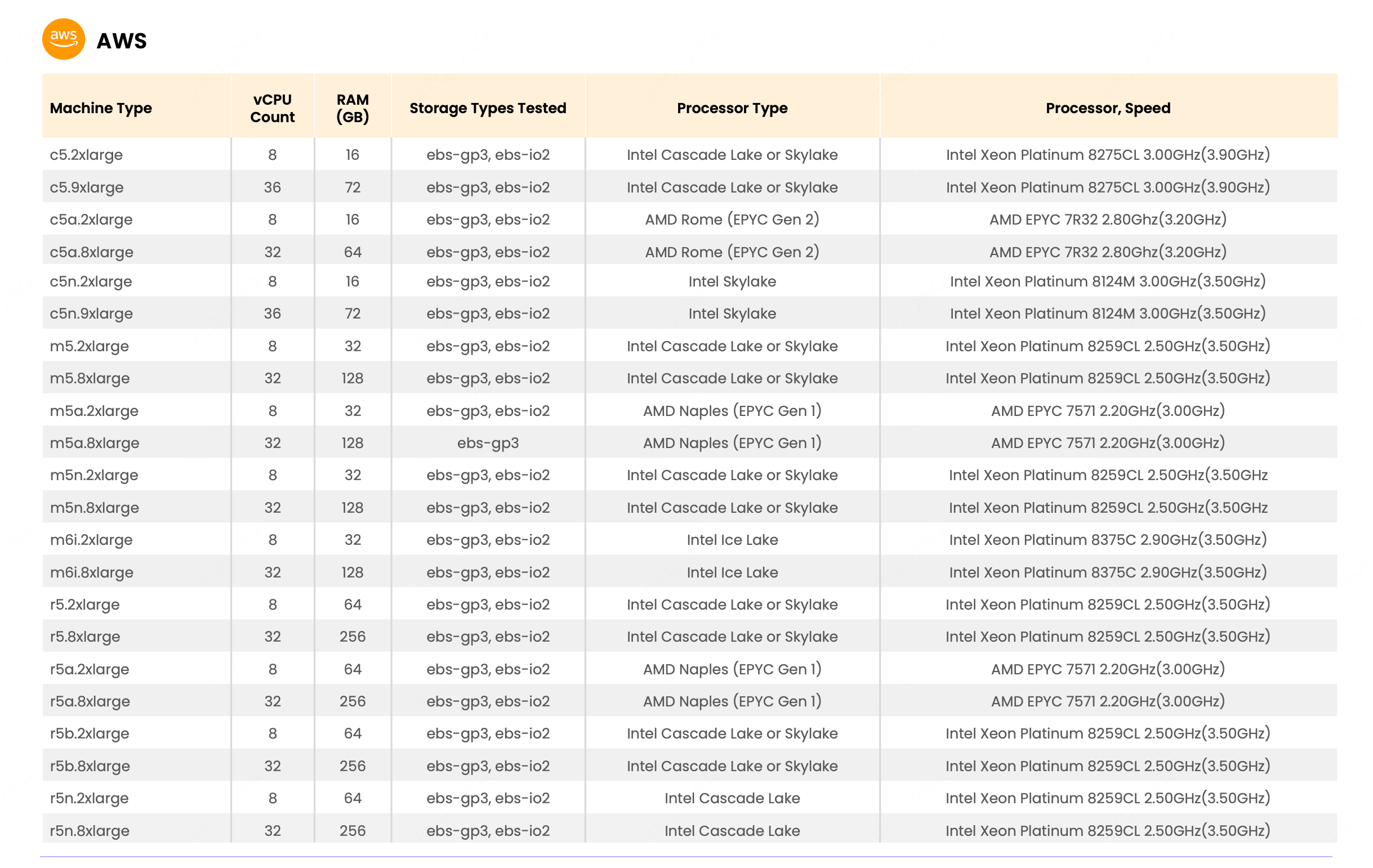 - 计算内存比例1:2 提升至1:4,实例性能提升较大(c5.2xlarge, c5n.2xlarge, m6i.2xlarge);