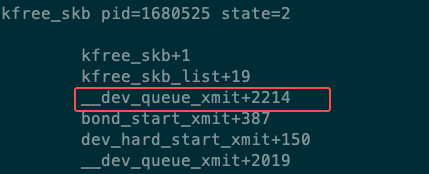 __dev_queue_xmit 在哪里调用了 kfree_skb_list ?用 BPF 脚本获取调用栈信息,此时可知 kfree_skb_list 在 __dev_queue_xmit+2214 位置的上一行。