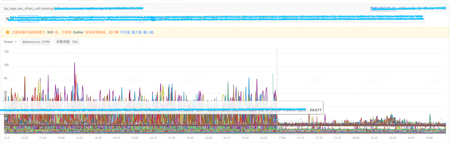 同时,这个问题和特性的事件强相关。通过上线公告发现,11:00 上线一监控组件,因此通过关闭该组件的指标采集,受影响的业务得到了灰度。