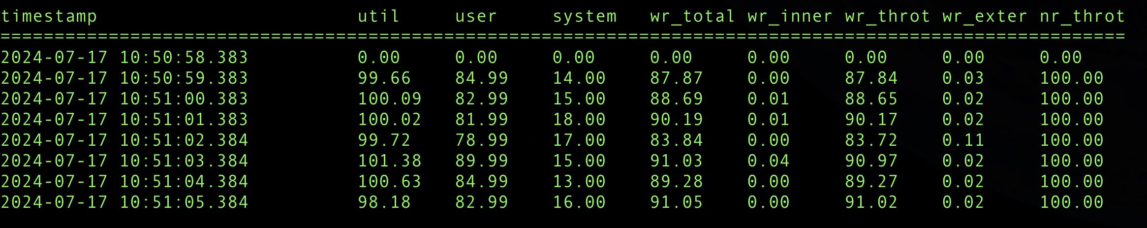 - 阶段3:在阶段1的基础上,增大 cgroup cpu 资源,不产生任何 throttle,业务毛刺消失。