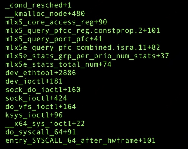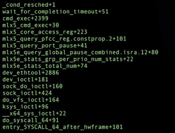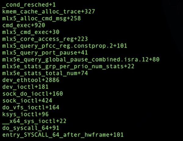 和业务沟通后发现,新的组件通过 ethtool 获取网卡的监控指标。但并非开启该组件采集的宿主机都有问题,统计后发现:有问题宿主机的网卡驱动为:mlx5_core、ixgbe,无问题的宿主机的网卡驱动为:bnxt_en。
