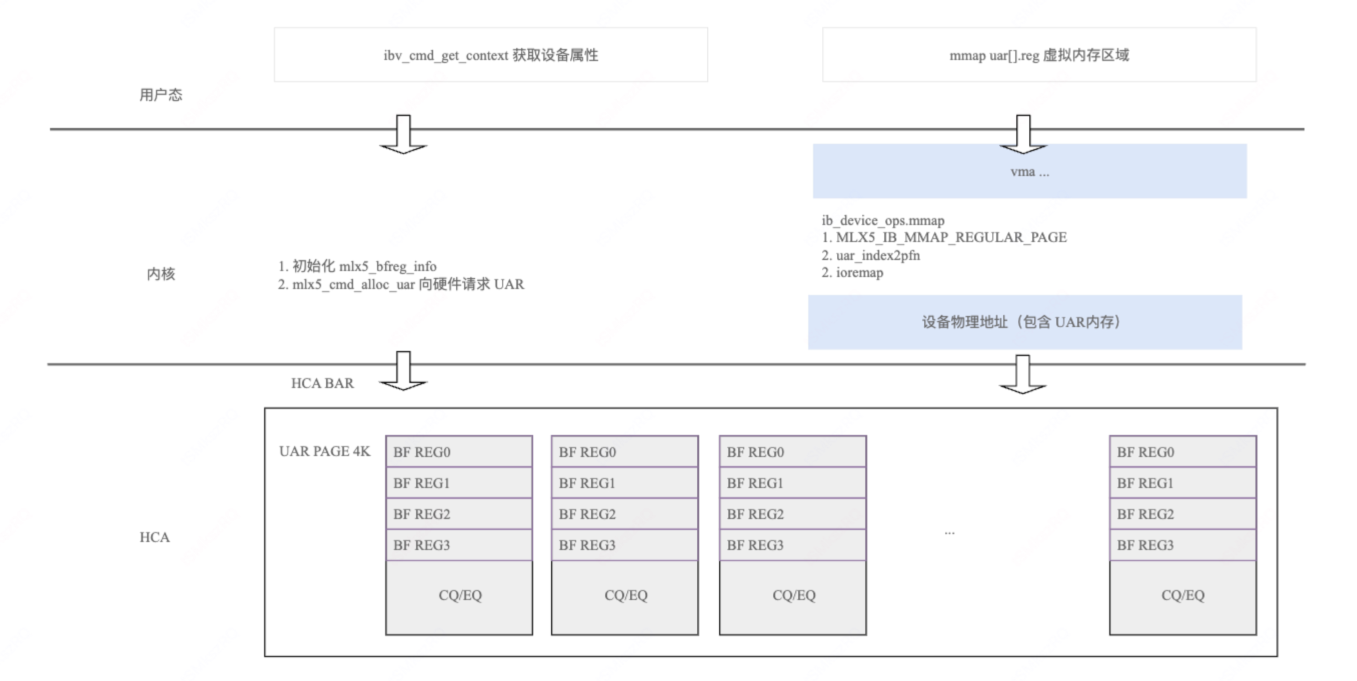 ibv_open_deviceUser-mode Code (2):The user-mode program completes the UAR resource mapping based on the information returned by the kernel: