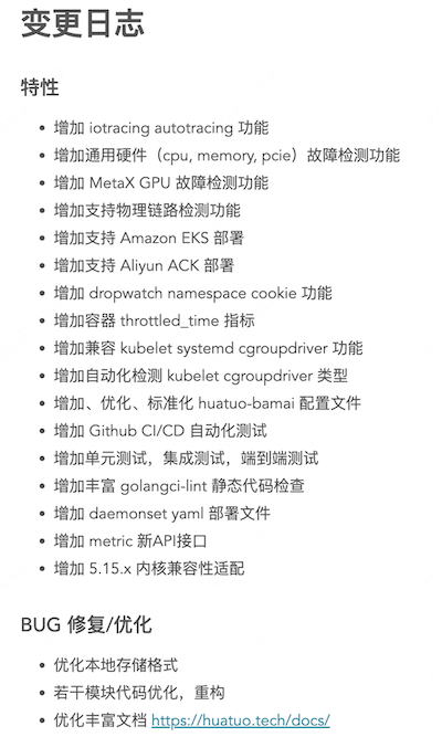 具体变化如下:https://huatuo.tech/docs/zh/v2.2.0/changelog/